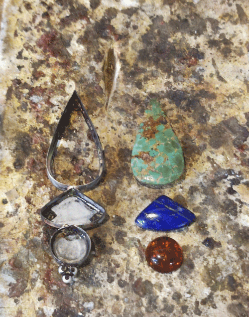 Colgate de plata con turquesa natural, lapislázuli y ámbar